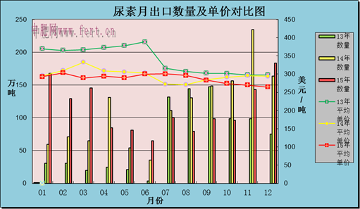 近日國(guó)家海關(guān)部門公布2015年12月尿素出口183.43萬噸(實(shí)物量,下同),2015年全年我國(guó)尿素總出口數(shù)量1374.80萬噸,較2014年全年1361.55萬噸的出口總量增長(zhǎng)了0.97%。這意味著2014年的尿素出口總量的新高已成為過去,雖我國(guó)尿素出口總量仍在不斷增加,但我們仔細(xì)分析便會(huì)發(fā)現(xiàn)2015年尿素出口平均單價(jià)僅286.5美元/噸,2014年尿素出口平均單價(jià)為294.4美元/噸,同比降低了2.68%。為什么在出口價(jià)格走低的情況下,尿素出口總量卻再創(chuàng)新高呢?且聽中國(guó)化肥網(wǎng)分析師小孫慢慢道來。